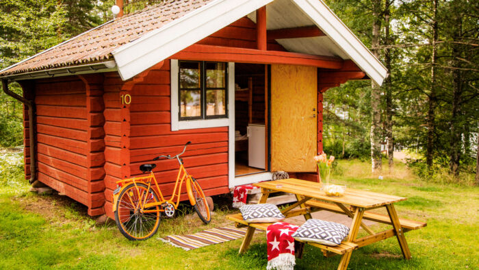 Välj mellan stuga, camping eller glamping på Leksand Resort. Under vecka 24-32 finns det många olika alternativ på boende hos oss.